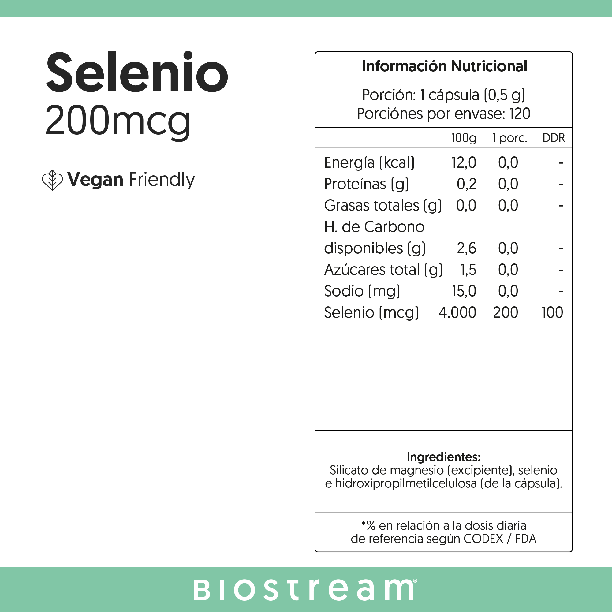 Silicato de magnesio (excipiente), selenio y gelatina (de la cápsula).